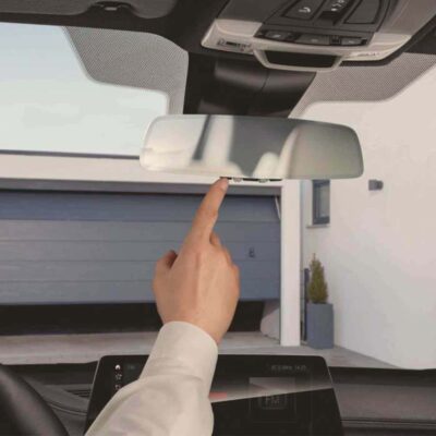Der rahmenlose Fahrzeuginnenspiegel hat eine integrierte Universalfernbedienung. Sie ist selbstlernend und ermöglicht das Öffnen und Schließen von z.B. Garagen- und Haustüren vom Fahrzeug aus.